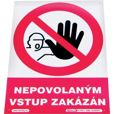 Tabulka \"Nepovolaným vstup zakázán\". Bezpečnostní, plastová, tloušťka 0,5 mm, znak + text v českém jazyce.\n