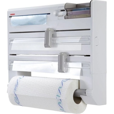 Držák na papírové ručníky 6v1 - určení pro: hliníkovou, potravinářskou fólii, papírové ručníky nebo sáčky - navíc obsahuje zásobník na lepicí pásku a úložný prostor na...