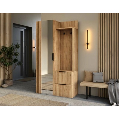 Elegantní předsíňová stěna Riganni dub artisan je moderním řešením pro ty, kteří požadují praktičnost, styl a kvalitní zpracování v jednom. Kombinuje velké vertikální zrcadlo,...