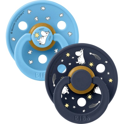 BIBS x Moomin Colour dudlíky 2ks (vel. 2) z přírodního kaučuku jsou měkké, pružné a bezpečné. Kruhový kroužek s otvory nedráždí pokožku, podporují přirozený vývoj dásní a zoubků.