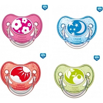 Silikonový dudlík s gumičkou symetrického tvaru s potiskem Pastels. Dudlík neobsahuje BPA. V balení 1 kus. Určen pro děti 0-6m. Silikonové šidítko je vyrobeno z průhledného...