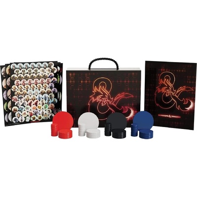 Sada 64 plastových žetonků pro znázornění nepřátel ve hře Dungeons & Dragons5 archů znovupoužitelných nálepek častých tvorů2 vyndavatelné přihrádky na žetonkysložka na archy...