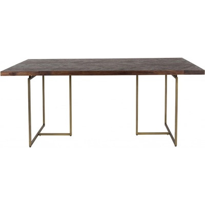 Hnědý jídelní stůl Class je tvořen dřevěnou deskou a elegantní podnoží v mosazném odstínu ve stylu vintage. Vrchní část stolu se vzorem rybích kostí je vyrobena z polotvrdé...