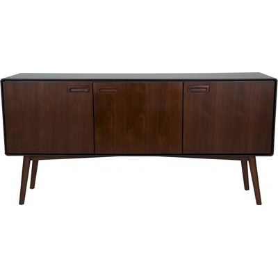 Dvířka a poličky z ořechové dýhy obklopené černým rámem z dřevovláknité desky přinášejí do všech interiéru nádech designu z 50. let minulého století. Tato nízká komoda se dvěma dvířky, dvěma poličkami v každé z nich, jednou zásuvkou a také jedním odkládacím prostorem...
