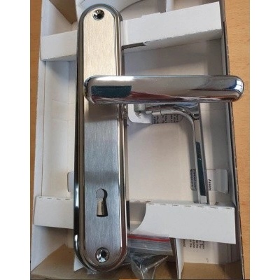 Nerezové kování na plastové podrozetě s vratnou pružinou s výstupky pro lepší fixaci ve dveřích, rozety se montují skrz dveře proti sobě. Průměr rozet Ø51mm. Balení...