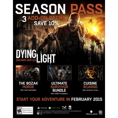 Dying Light Season Pass - PC Prožijte dosud nepoznanou kapitolu příběhu Kylea Cranea, která se odehrává v rozlehlé oblasti za branami města Harran. Opusťte městskou džungli a...