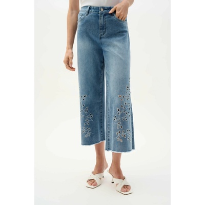 JOSEPH RIBKOFF dámské džíny modré s květinovou výšivkou a kamínky