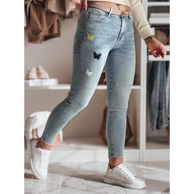 Basic dámské skinny džíny s kamínky a výšivkou lumitta uy2429 Modré