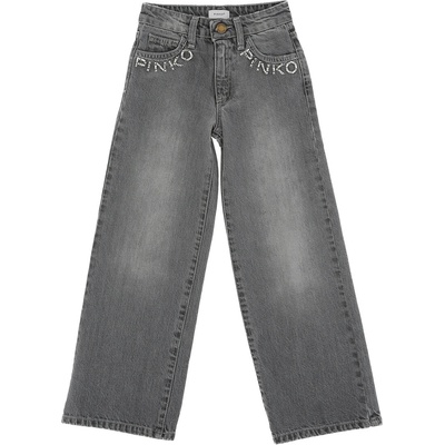 Dívčí široké rifle značky PINKO Up. Rifle jsou zvelmi příjemné rifloviny. Na přední i zadní straně jsou dvě funkční kapsy. Na přední straně u kapes jsou kamínky. Zapínání mají rifle na knoflík a zip. Velikost 168(14) odpovídá dámské S/M.