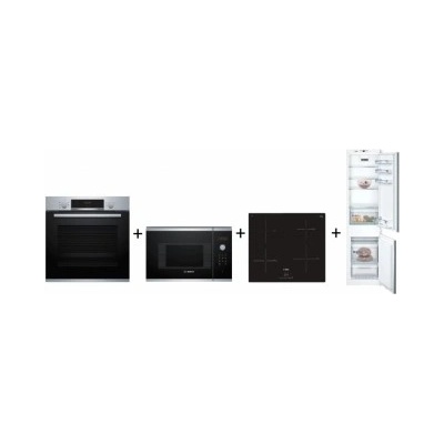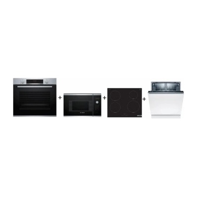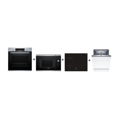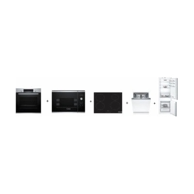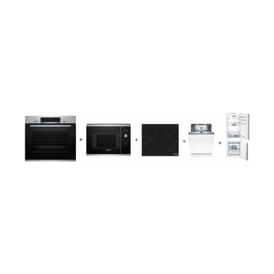 Set vestavných spotřebičů Bosch - horkovzdušná trouba + mikrovlnná trouba + indukční varná deska + vestavná myčka nádobí + vestavná chladnička Serie | 4 Bosch...