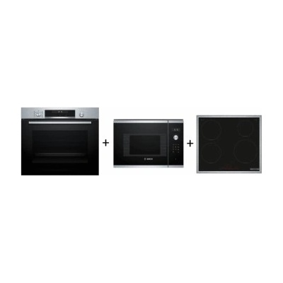 Set vestavných spotřebičů Bosch - horkovzdušná trouba + mikrovlnná trouba + indukční varná deska Serie | 4 Bosch HBA513BS1 horkovzdušná trouba Technická specifikace Typ...