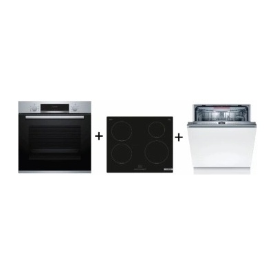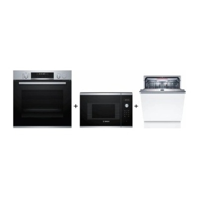Set vestavných spotřebičů Bosch - horkovzdušná trouba + mikrovlnná trouba + indukční varná deska + vestavná myčka nádobí Serie | 4 Bosch HBA513BS1 horkovzdušná...