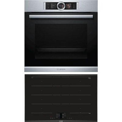 Set vestavných spotřebičů Bosch - horkovzdušná trouba mikrovlnami a funkcí přidané páry + indukční varná deska Serie | 8 Bosch HNG6764S6 Komfort: 3 x 2,5" barevné grafické...