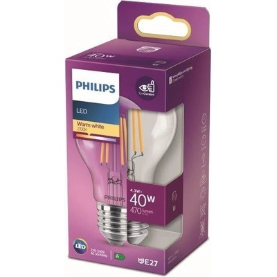 Philips 8718699761998 LED žárovka 1x4,3W | E27 | 470lm | 2700K - teplá bílá, čirá, EyeComfort
