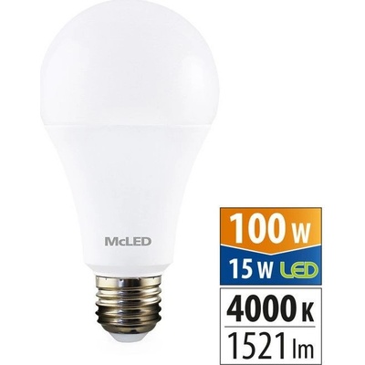 LED žárovka 15W, E27, 4000K, CRI80, vyzařovací úhel 200°, 360° 1521lm LED žárovka A65 15W (ekvivalent 100W) s paticí E27 a příjemnou neutrální bílou barvou 4000K se výborně...