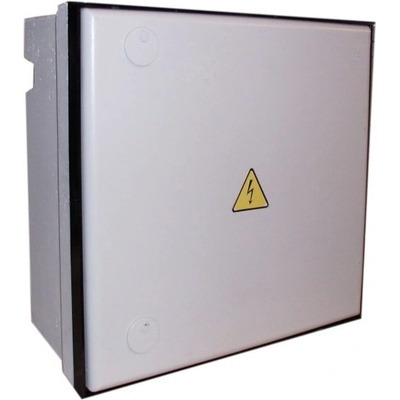 k osazení dvousazbového elektroměru se spínacím prvkem sazby, přístroje na elektroměrové desce s plombovatelným krytem jističů, montáž do výklenku, jmenovitý proud 63 A, distribuční síť PRE, mechanická odolnost IK 10, krytí IP 44, rozměry 540×510×250 mm, hmotnost 25 kg