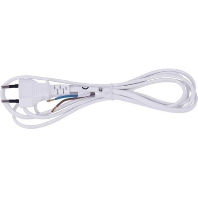 Dvojžilový napájecí přívodní kabel se zástrčkou do zásuvky (druhá strana bez koncovky) Flexo šňůra v bílé nebo černé barvě o délce 2 metry. Technické specifikace: vstupní max.napětí: 250V max. proud: 5A průřez vodičů: 2x0,75mm vodič: H03VVH2-F typ izolace: PVC stupeň...