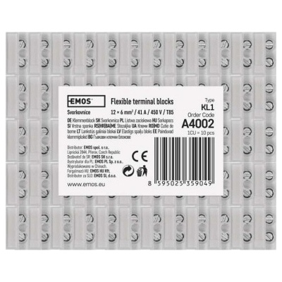 jmenovité napětí: 450 V~ produkt: svorkovnice pro průřez vodiče: 12× 6 mm² prodejní obal: 10 ks, fólie jmenovitý proud: 41 A EAN: 8595025359049