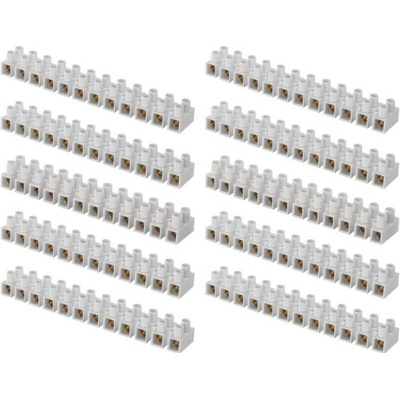jmenovité napětí: 450 V~|jmenovitý proud: 76 A|prodejní obal: 10 ks, fólie|produkt: svorkovnice|pro průřez vodiče: 12× 2,5–16 mm2 EMOS A4004 Svorkovnice 12x16,0 mm bílá (10 ks)