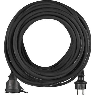 Venkovní prodlužovací kabel 20 m, 1 zásuvka, černý, guma, 250 V, 2,5 mm2. Gumový prodlužovací přívod na 250 V~ slouží k prodloužení elektrické energie tam, kam pevná zásuvka...