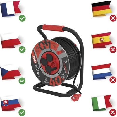 Prodlužovací kabel na bubnu 25 m, 4 zásuvky, červený, PVC, 230 V, 1,5 mm2. Jeho výhodami jsou vypínač, vodicí oko pro plynulé navinutí kabelu a brzda cívky, která brání...
