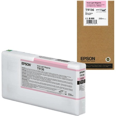 Originální cartridge Epson T9136, C13T913600, barva jasná světle purpurová (vivid light magenta), výtěžnost 200 ml. Pro tiskárny Epson SureColor P5000, SureColor SC-P5000, SureColor P5000 STD, SureColor SC-P5000 STD, SureColor P5000 STD Spectro, SureColor SC-P5000 STD...
