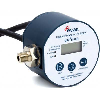 digitální tlakový spínač EVAK DPC 10, 230V/50Hz/12A, kabel 0,5m. ZB00043977. Digitální tlakový spínač s ochranou proti chodu nasucho. Digitální tlakový spínač pro řízení čerpadel a domácích vodáren. Výhody: - Digitálně nastavitelný spínací a vypínací tlak (rozsah...