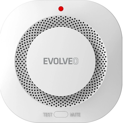 Detektor kouře, kompatibilní s EVOLVEO Alarmex Pro, dosah až 80m, napájení 9V baterie, vestavěná siréna 90dB, certifikováno EN 14604:2005, barva: bílá