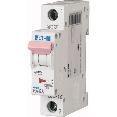 Jednofázový jistič EATON PL6-C16/1, jmenovitý proud 16A, charakteristika C, vypínací schopnost 6kA, pro střídavé i stejnosměrné napětí 230V/400V AC / 48V DC. EATON...
