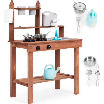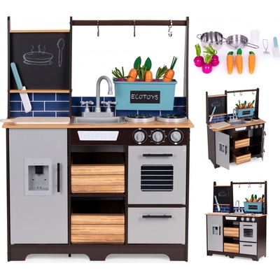 ECOTOYS Dětská dřevěná kuchyňka se zvukovými a LED efekty s příslušenstvím TL403005