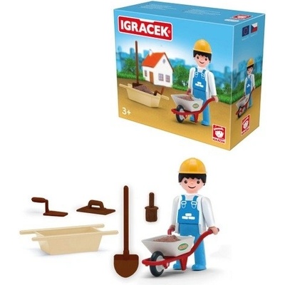 Cihly přivez motůčkem a v neckách si namíchej maltu. Igráček zedník, to je šikovný a vždy řádě nachystaný řemeslník. Legendární postavička od roku 1976. Vyrobeno v ČR.