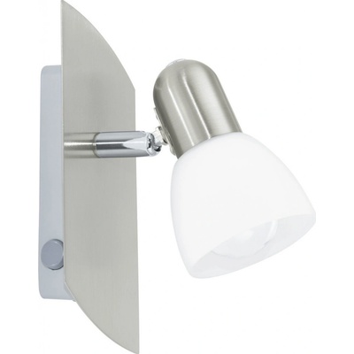 : S vypínačem, Barva: matný nikl / satén / bílá, Materiál: kov / sklo, Objímka: E14, Napětí: 230 V, Výkon: 1x25 W, Délka: 190 mm, Šířka: 70 mm, : Žárovka není součástí svítidla., Záruka: 2 roky