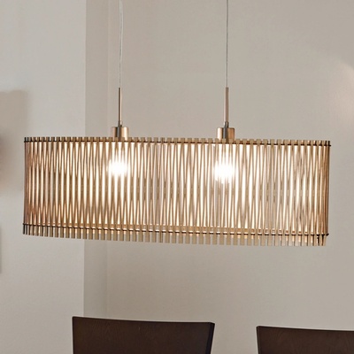 Krásný elipsovitý lustr ze světlého javorového dřeva poskytne dostatek světla i velkému stolu. Umístěte do jídelny, kuchyně, obývacího pokoje, případně do ložnice nebo haly. Dokupte 2 žárovky s paticí E27 a max. výkonem 60W. Délka 77,5 cm.