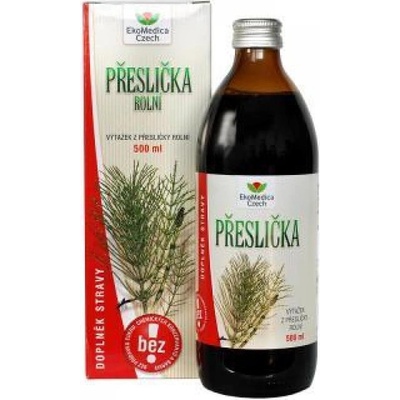 EkoMedica Přeslička 500 ml Výtažek z natě Přesličky rolní je velmi vhodný k péči o kardiovaskulární systém a játra. Přeslička přispívá k normálnímu stavu krevních cév i srdeční artérie. Obsahuje velké množství dobře vstřebatelného křemíku. Přispívá k udržování vlasů,...