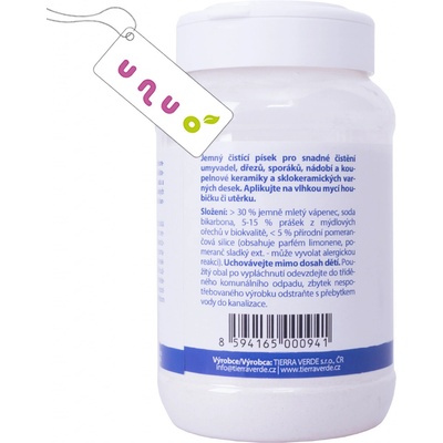Čistící písek v dóze 500g. Použití: Jemný čistící písek pro snadné čistění umyvadel, dřezů, sporáků, nádobí a koupelnové keramiky a sklokeramických varných desek. Základem...