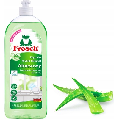 Frosch Prostředek na mytí nádobí Aloe Vera 750 ml Prostředek na mytí nádobí Aloe Vera. Šetrný prostředek na nádobí rozpouští mastnotu, nečistoty a zanechává brilantní lesk....