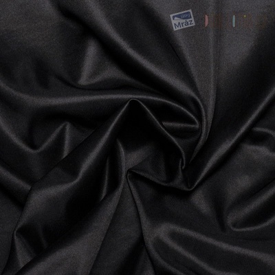 Luxusní elastická podšívka v černé barvě. Hladká splývavá a poddajná látka s matným leskem. Vhodná na podšívání šatů, sukní, kalhot, tunik, vest. Látka pruží po své šíři.