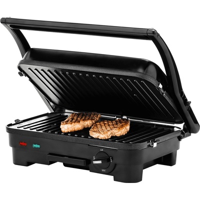 Elektrický kontaktní gril ETA Livero se 3 grilovacími polohami pro grilování masa i zapékání toustů.