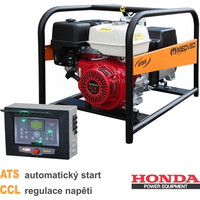 Třífázový záložní generátor MEDVED ATS s automatickým startem od českého výrobce ALFA IN a.s. Rozsah dodávky - Elektrocentrála MEDVED GRIZZLI 7000 H CCL - Řídící jednotka...