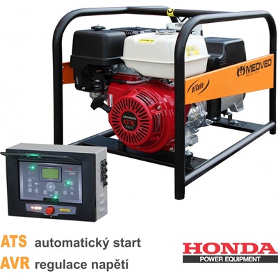 Třífázový záložní generátor MEDVED ATS s automatickým startem od českého výrobce ALFA IN a.s. Rozsah dodávky - Elektrocentrála MEDVED GRIZZLI 7000 H AVR - Řídící jednotka...