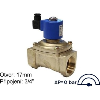Tento ventil se po přivedení napájení otevře. Pro správnou funkci potřebuje ventil na vstupní straně tlak a není tedy vhodný pro samotížné systémy. Specifikace: Napětí: 12V DC Příkon: 5W Tlak: 0,02 - 0,8 Mpa Průměr vstupu a výstupu: 3/4'' Teplota média: 0 -...