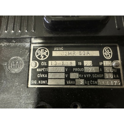 jistič na dotaz i jiné typy a hodnoty - Jistič Deon třífázový J2MR 50A OEZ Letohrad - hlavní jistič před elektroměr charakteristika A vedení - hlavní jistič před elektroměr...