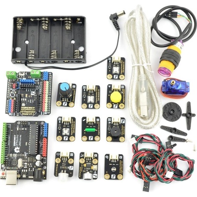 Startovací sada představující svět programování Arduina. Umožňuje konstrukci několika projektů využívajících Arduino a mimo jiné: serva, LED diody, senzor vzdálenosti, zvuk,...