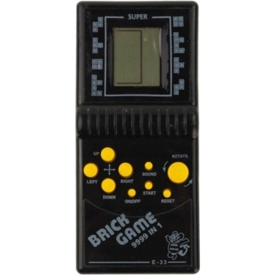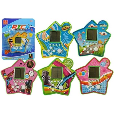 Brick Game (Tetris), hračka na baterie, se zvukem. Dostupná ve čtyřech barevných variantách. Klasická elektronická hra se skládáním kostiček. Cílem hry je skládat různé tvary do sebe a nenechat žádné místo v řadě prázdné. Po zaplnění celé řady se posune vše o řadu...