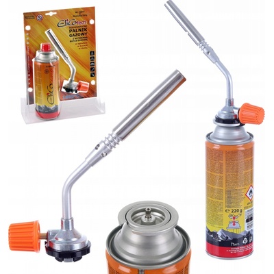 Elico Plynový hořák RK-5001T s plynem 220 g Sada se skládá z lutlampy RK-5001T a odpovídající kartuše s butanem (220 g). Plamen z hořáku dosahuje délky až 7 cm a teploty 1800 °C. Zahnutá trubka umožňuje zahřát ohněm málo přístupná místa. Pomocí otočného knoflíku snadno...