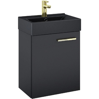Sada Tiny 45 cm, 1 dvířka, vybavená 1 výškově nastavitelnou policí. Vyrobeno z materiálů odolných proti vlhkosti, přední strana a korpus z lakované desky v matné černé barvě,...