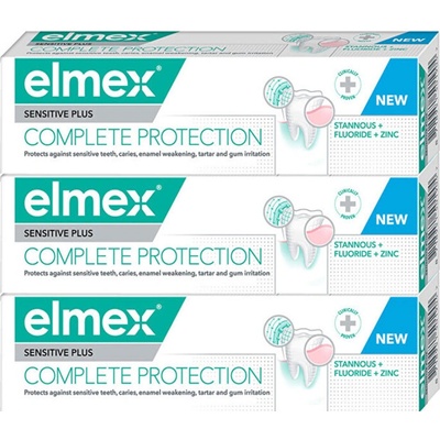 Zubní pasta elmex® Sensitive Plus Complete Protection je zubní pasta pro citlivé zuby s obsahem fluoridu cínatého a fosforečnanu zinečnatého, které poskytují kompletní ochranu...