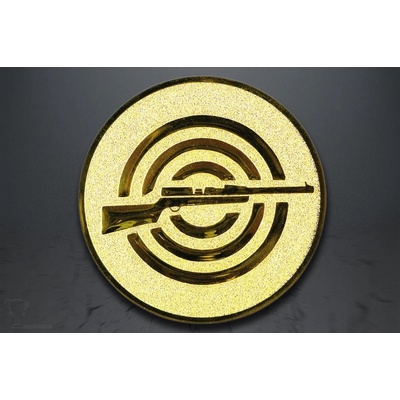 Emblém puška, 25 a 50 mm, zlato Kovové logo o průměrech 25 a 50 mm v barevném provedení zlatá, stříbrná a bronzová. Emblém je možný vložit do medailí, pohárů, kokard, talířů,...