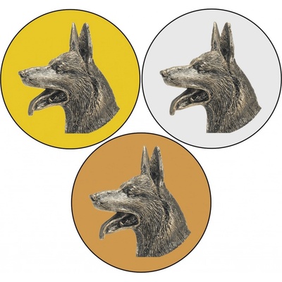 Kovové grafické logo "Belgický ovčák I" GL360 o průměrech 25 a 50 mm. Zde můžete zakoupit podle vaší potřeby emblémy samotné. Grafické GL loga psů jsou tištěna na kov...