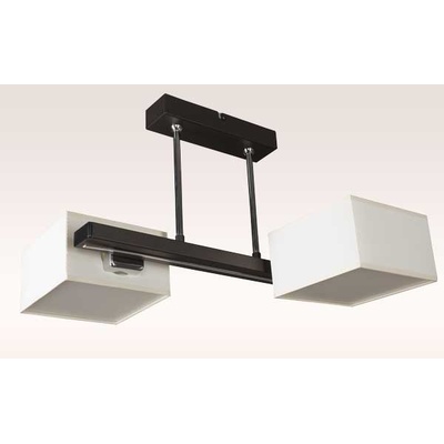 š = 42cm ; v = 28cm 2 x E14 ; max.60W ; 230V Lustr vyrobený z kovu v povrchové úpravě hnědá wenge v kombinaci s chromem, stínidla textilplast, spodní část zakryta ledovým plastem. Dodáváno bez žárovek, možno použít klasické, úsporné i LED.